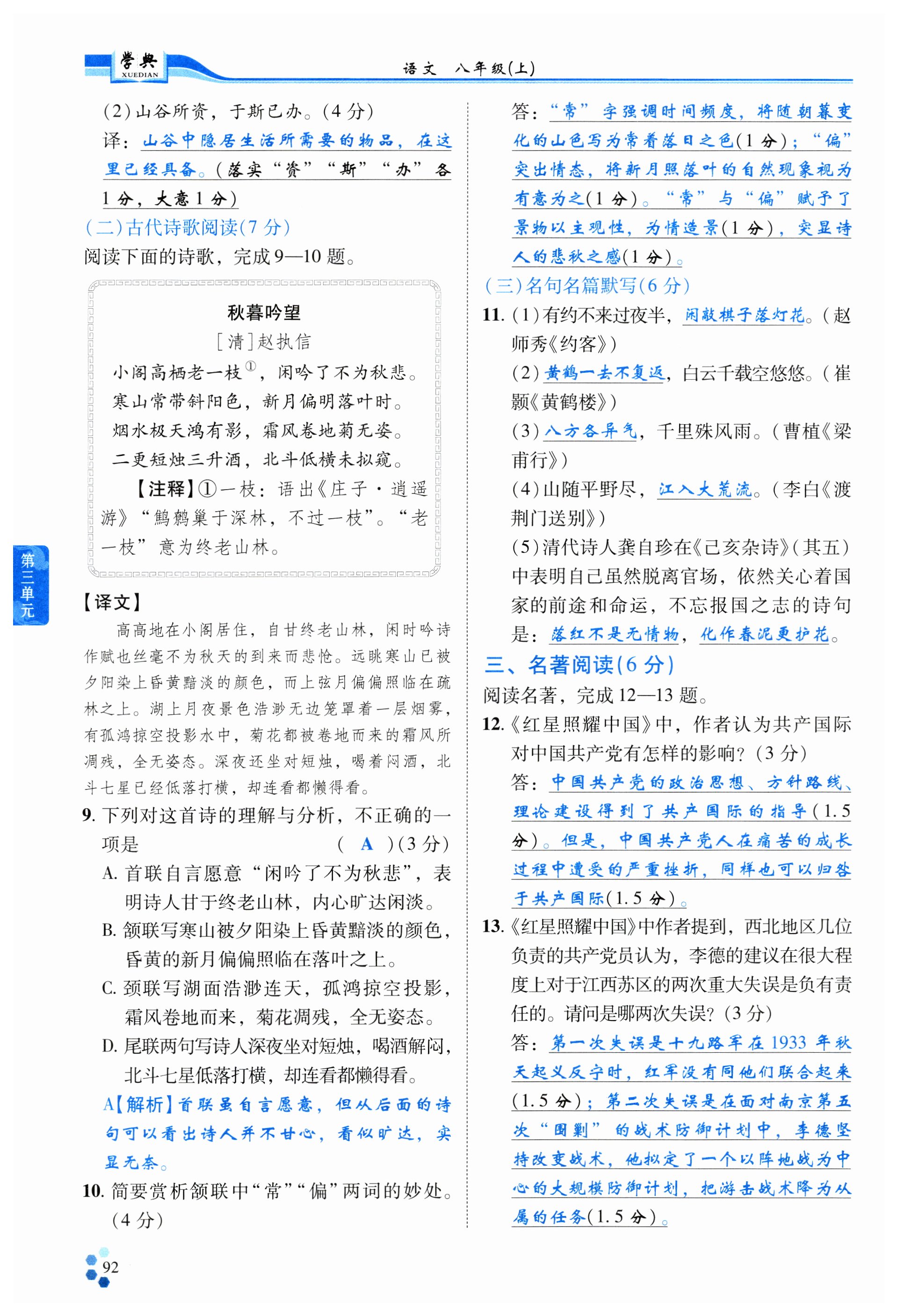 注:目前有些书本章节名称可能整理的还不是很完善,但都是按照顺序排列的,请同学们按照顺序仔细查找。练习册 2024年学典四川八年级语文上册人教版 答案主要是用来给同学们做完题方便对答案用的,请勿直接抄袭。
