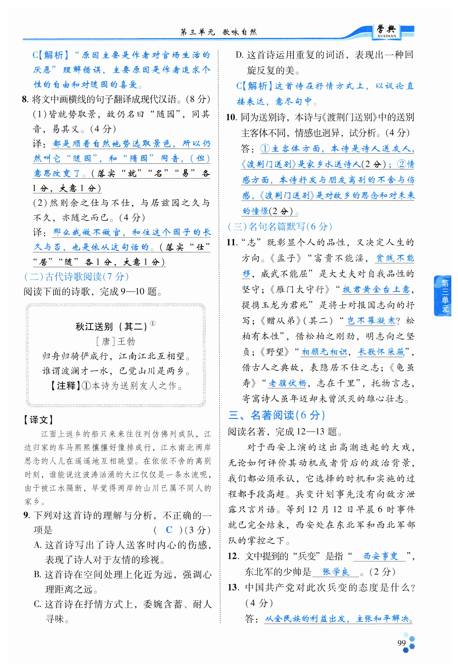 注:目前有些书本章节名称可能整理的还不是很完善,但都是按照顺序排列的,请同学们按照顺序仔细查找。练习册 2024年学典四川八年级语文上册人教版 答案主要是用来给同学们做完题方便对答案用的,请勿直接抄袭。