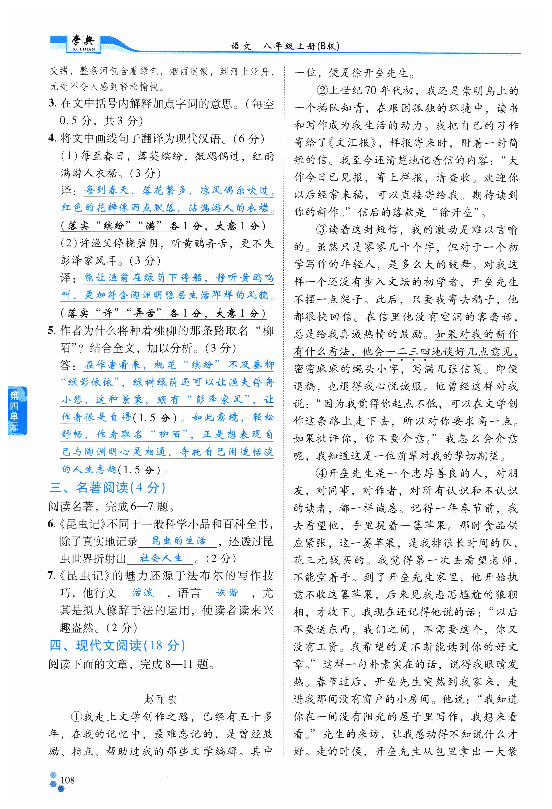 注:目前有些书本章节名称可能整理的还不是很完善,但都是按照顺序排列的,请同学们按照顺序仔细查找。练习册 2024年学典四川八年级语文上册人教版成都专版 答案主要是用来给同学们做完题方便对答案用的,请勿直接抄袭。