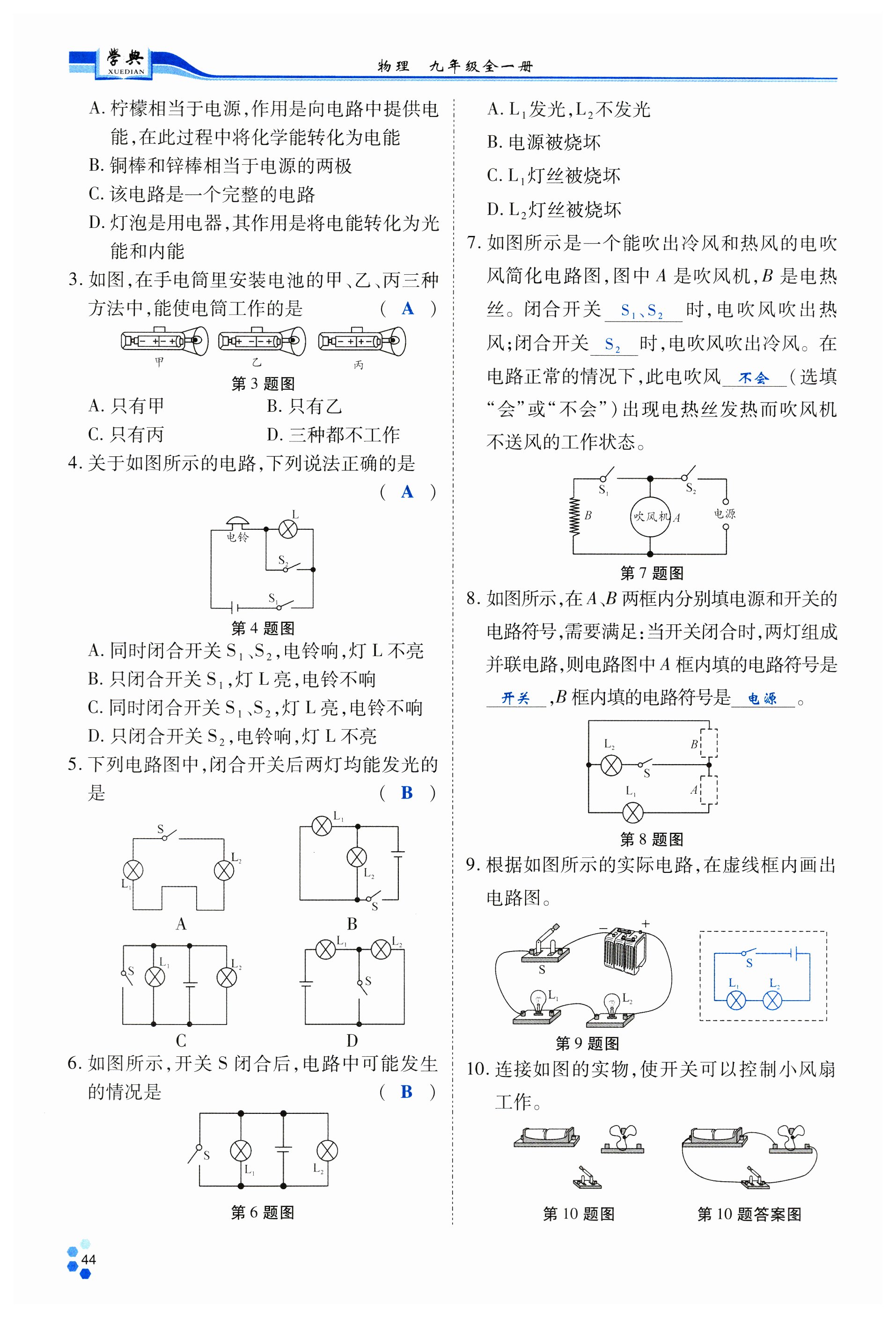 注:目前有些书本章节名称可能整理的还不是很完善,但都是按照顺序排列的,请同学们按照顺序仔细查找。练习册 2024年学典北京时代华文书局九年级物理全一册教科版 答案主要是用来给同学们做完题方便对答案用的,请勿直接抄袭。