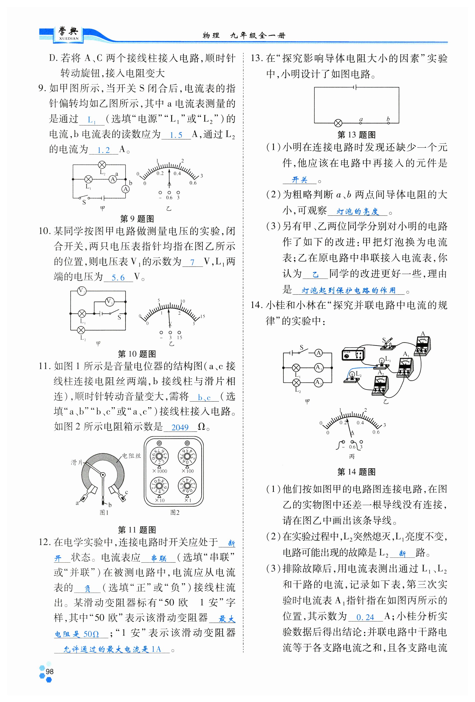 注:目前有些书本章节名称可能整理的还不是很完善,但都是按照顺序排列的,请同学们按照顺序仔细查找。练习册 2024年学典北京时代华文书局九年级物理全一册教科版 答案主要是用来给同学们做完题方便对答案用的,请勿直接抄袭。