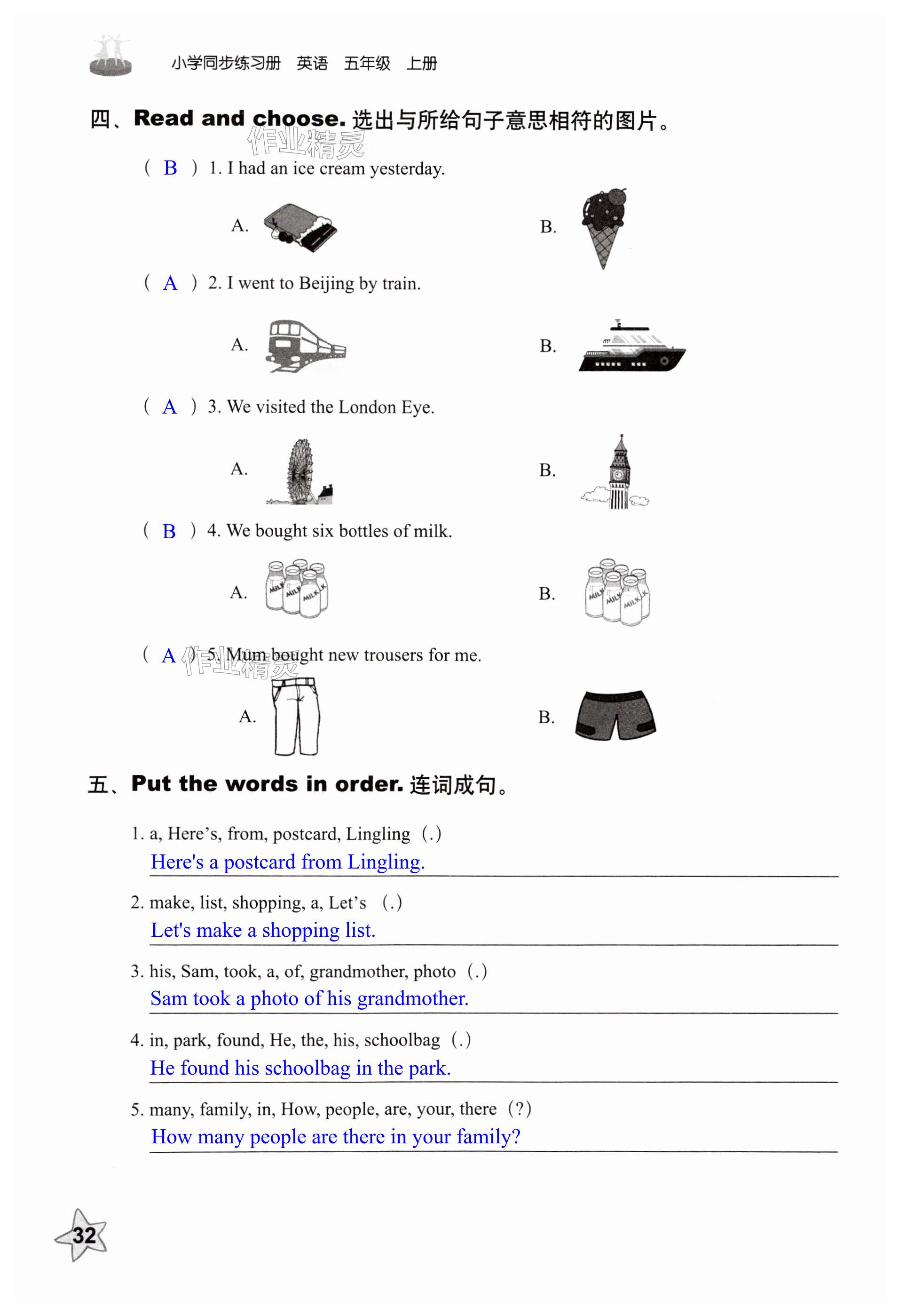 注:目前有些书本章节名称可能整理的还不是很完善,但都是按照顺序排列的,请同学们按照顺序仔细查找。练习册 2024年同步练习册五年级英语上册外研版山东友谊出版社 答案主要是用来给同学们做完题方便对答案用的,请勿直接抄袭。