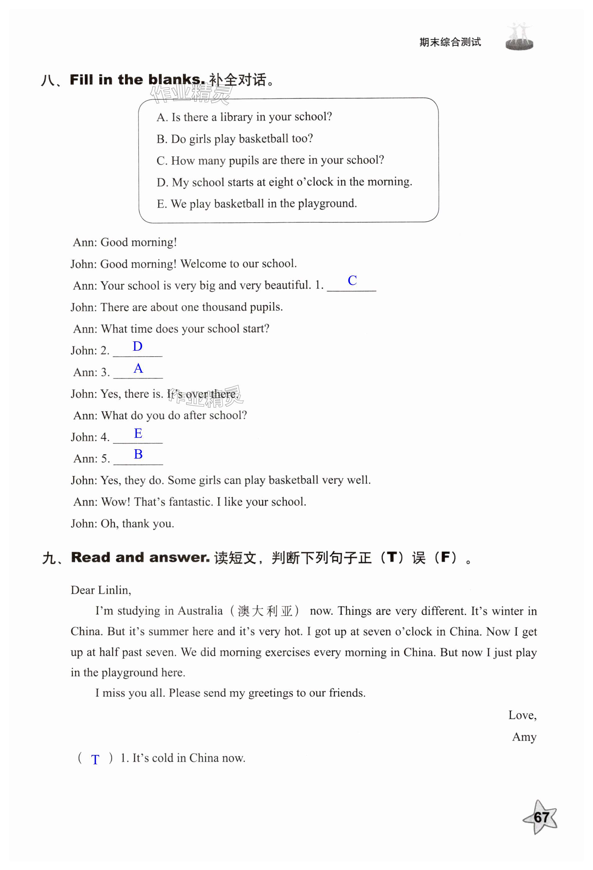 注:目前有些书本章节名称可能整理的还不是很完善,但都是按照顺序排列的,请同学们按照顺序仔细查找。练习册 2024年同步练习册五年级英语上册外研版山东友谊出版社 答案主要是用来给同学们做完题方便对答案用的,请勿直接抄袭。