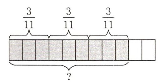 \frac{3}{11}+ \frac{3}{11}+ \frac{3}{11}= $$( )$ \frac{3}{11}×( )= $$( )