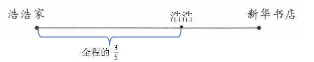 1. 浩浩家距新华书店1300m。浩浩从家出发去新华书店,已经走了全程的$\frac{3}{5}$。