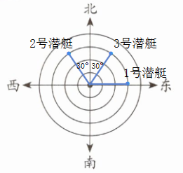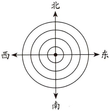 下图是一个雷达站的雷达屏幕示意图,每相邻两个圆之间的距离都是50km,最小圆的半径也为50km。以雷达站为观测点,标出下列潜艇的位置。