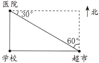 (2)以超市为观测点,医院在( )偏( )( )方向上。