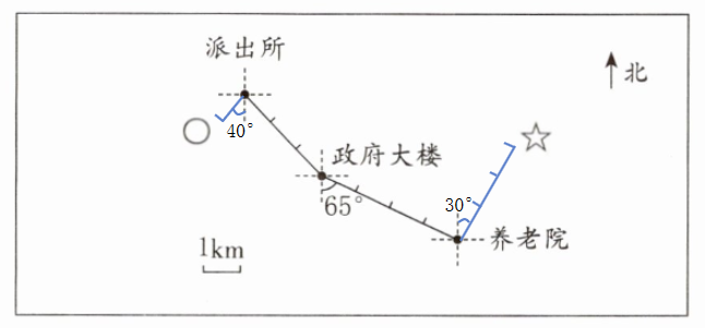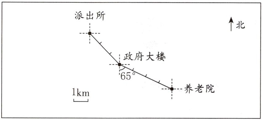(1)养老院在政府大楼的( )偏( )( )方向( )km 处。