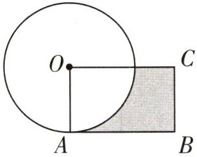 4. 右图中圆的周长是 $25.12cm$,圆的面积正好等于长方形 $OABC$ 面积的 $2$ 倍。求涂色部分的面积。
