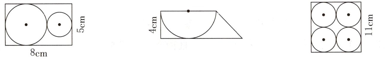 (2)在一张长为 6cm、宽为 4cm 的长方形纸内剪一个最大的圆,这个圆的直径是( )cm,半径是( )cm,周长是( )cm,剪去部分的面积是$( )cm^2。$