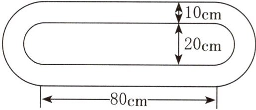 3. 一辆玩具车的左右车轮相距 $ 10cm $,在轨道(如下图)上跑一圈,内侧的车轮比外侧的车轮少跑了多少厘米?