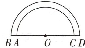 小红和小明分别从右图中的 $ A $、$ B $ 处出发,沿半圆走到 $ C $、$ D $ 处,小红所走的路线半径为 $ 10m $,她走过的路程是( )$ m $;小明所走的路线半径是 $ 12m $,他走过的路程是( )$ m $。两人所走的路程相差( )$ m $。