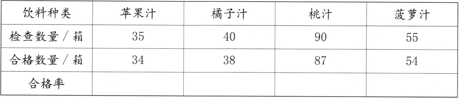 3. 质量检验部门对某城市部分饮料质量进行抽查,结果如下表,请补全表格。