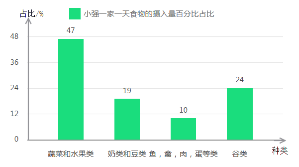 右面是小强一家一天食物的摄入量统计图。