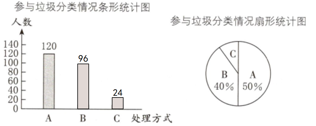 亮亮参加了学校组织的“垃圾分类 从我做起”宣传活动,他负责调查工作,并根据调查结果制成两幅统计图。