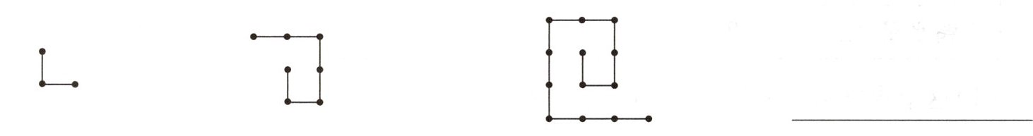 2. 下面各图形中有几个点?按规律画出下一个图形。