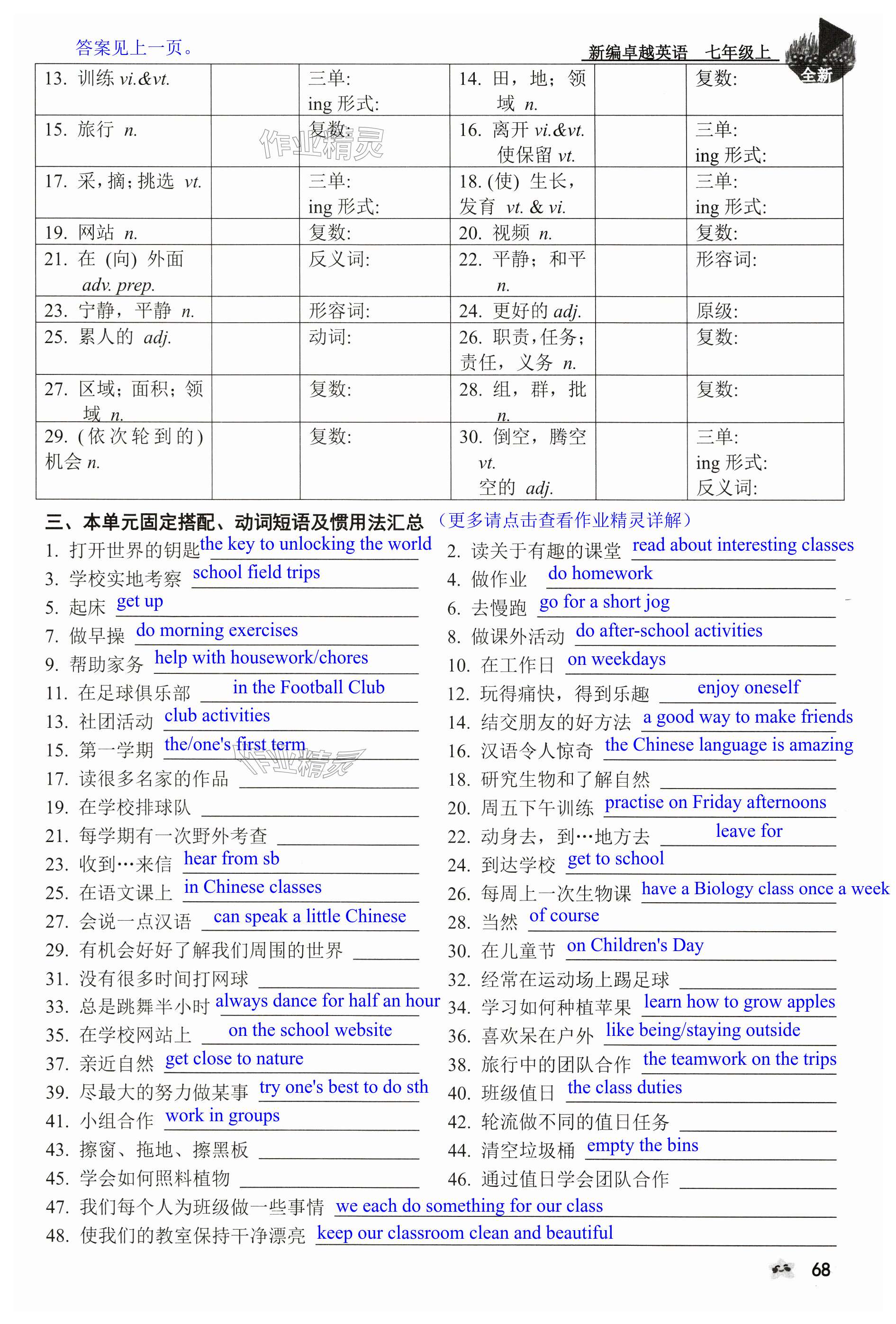 注:目前有些书本章节名称可能整理的还不是很完善,但都是按照顺序排列的,请同学们按照顺序仔细查找。练习册 2024年卓越英语七年级上册译林版 答案主要是用来给同学们做完题方便对答案用的,请勿直接抄袭。