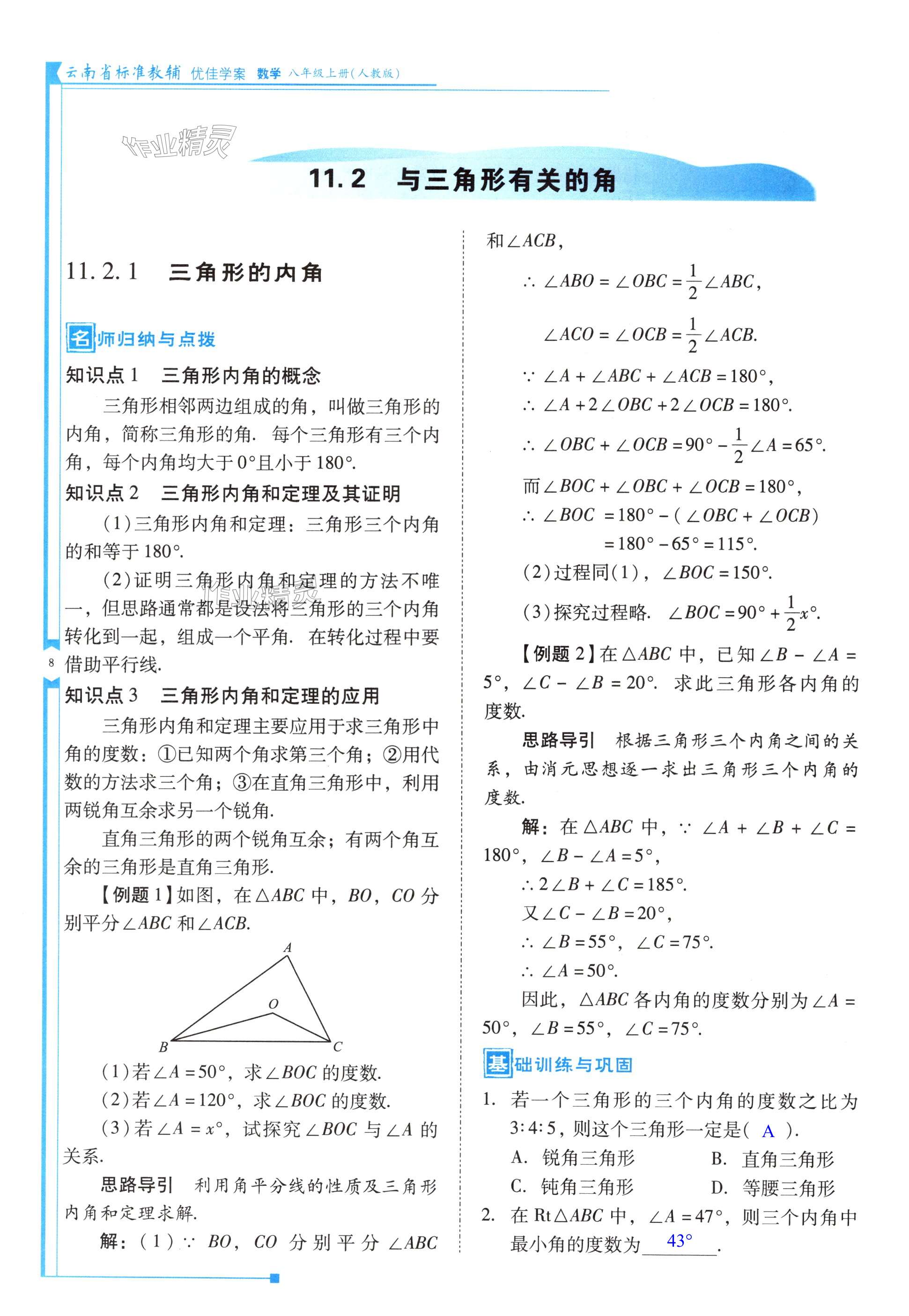注:目前有些书本章节名称可能整理的还不是很完善,但都是按照顺序排列的,请同学们按照顺序仔细查找。练习册 2024年云南省标准教辅优佳学案八年级数学上册人教版 答案主要是用来给同学们做完题方便对答案用的,请勿直接抄袭。