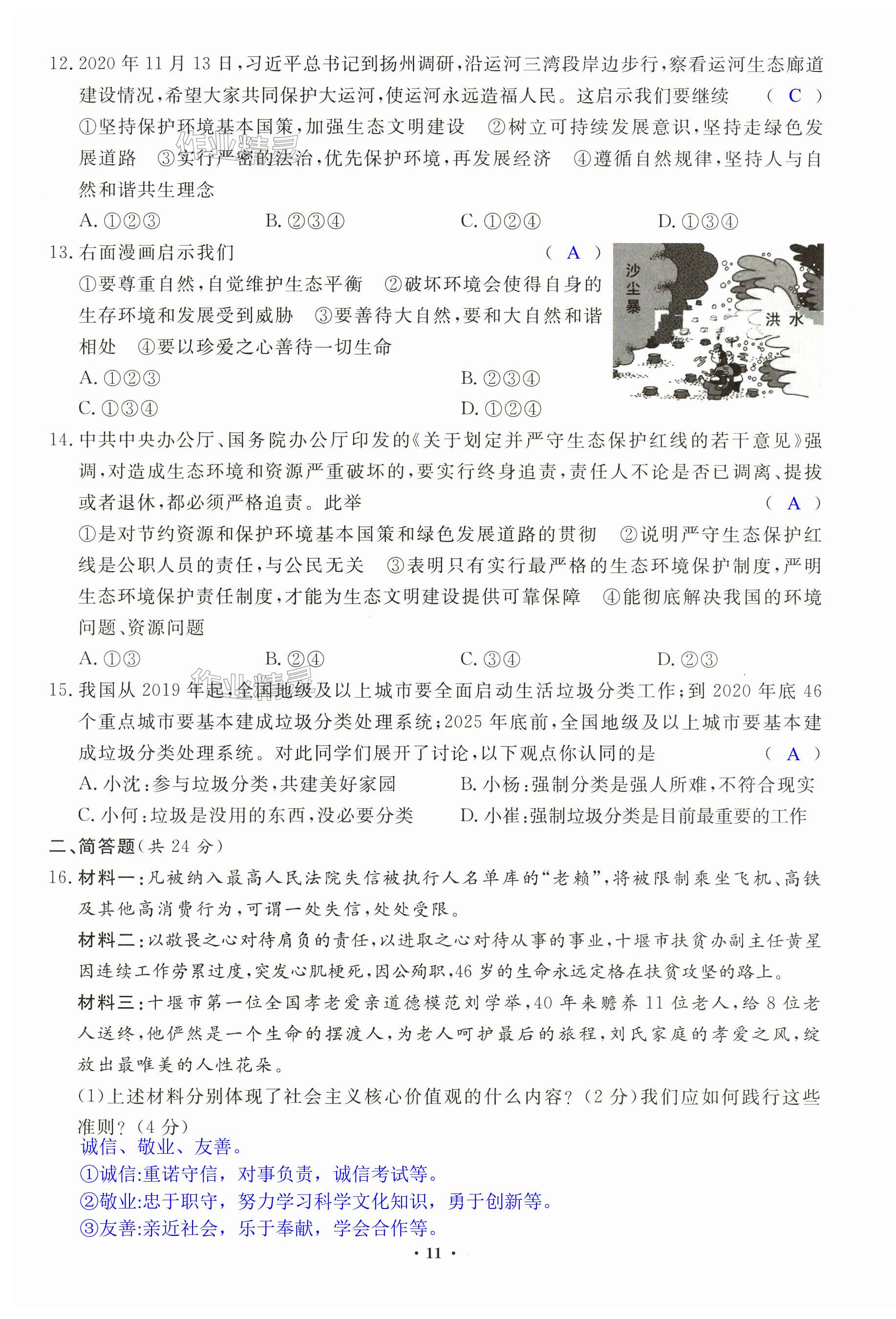 注:目前有些书本章节名称可能整理的还不是很完善,但都是按照顺序排列的,请同学们按照顺序仔细查找。练习册 2024年学生成长册九年级道德与法治全一册人教版 答案主要是用来给同学们做完题方便对答案用的,请勿直接抄袭。