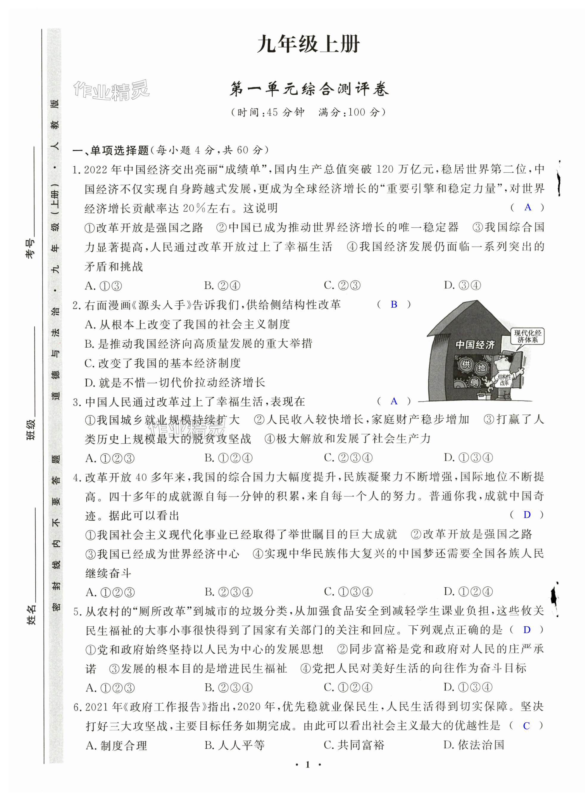 注:目前有些书本章节名称可能整理的还不是很完善,但都是按照顺序排列的,请同学们按照顺序仔细查找。练习册 2024年学生成长册九年级道德与法治全一册人教版 答案主要是用来给同学们做完题方便对答案用的,请勿直接抄袭。