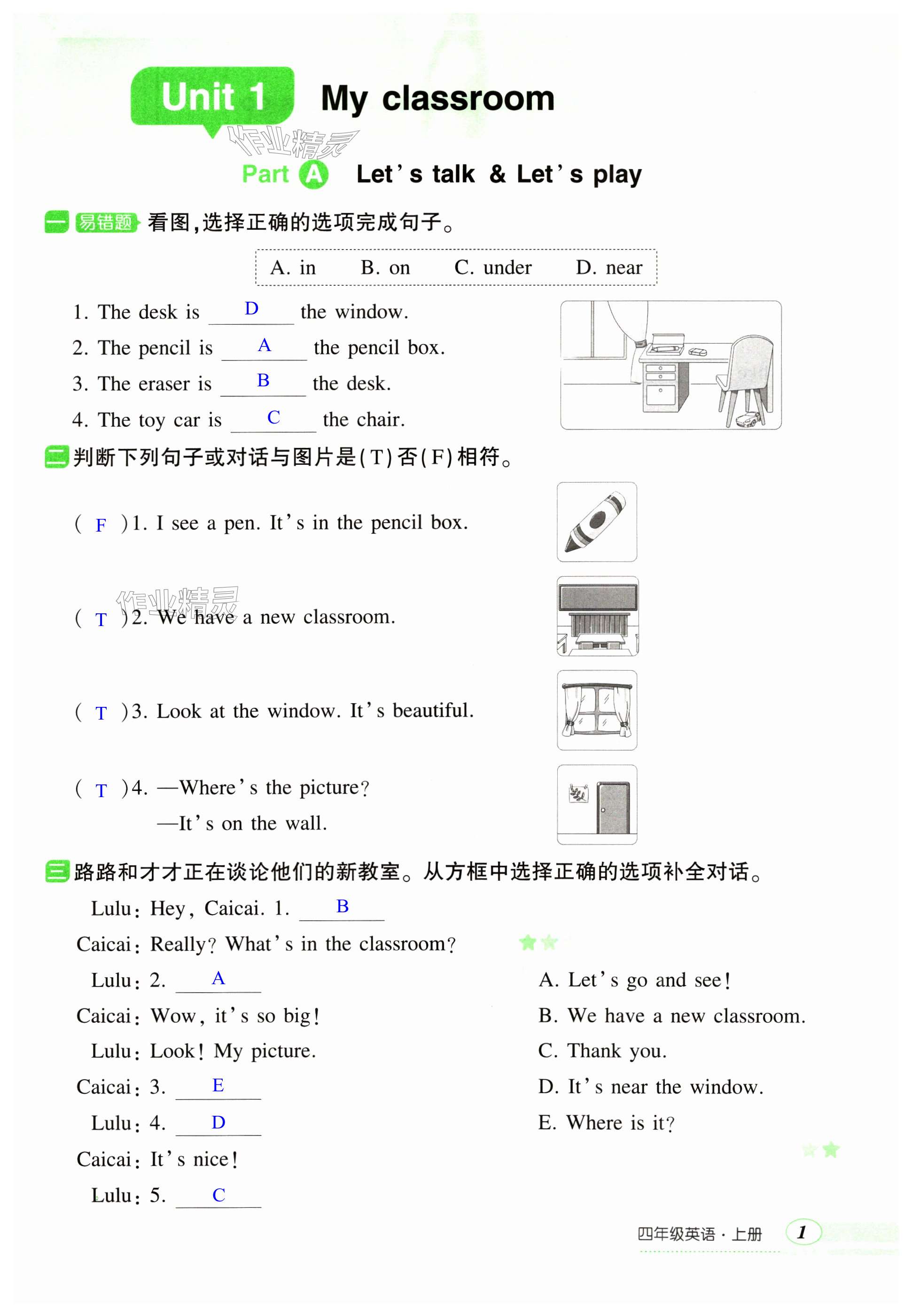 注:目前有些书本章节名称可能整理的还不是很完善,但都是按照顺序排列的,请同学们按照顺序仔细查找。练习册 2024年状元成才路创优作业100分四年级英语上册人教版浙江专版 答案主要是用来给同学们做完题方便对答案用的,请勿直接抄袭。