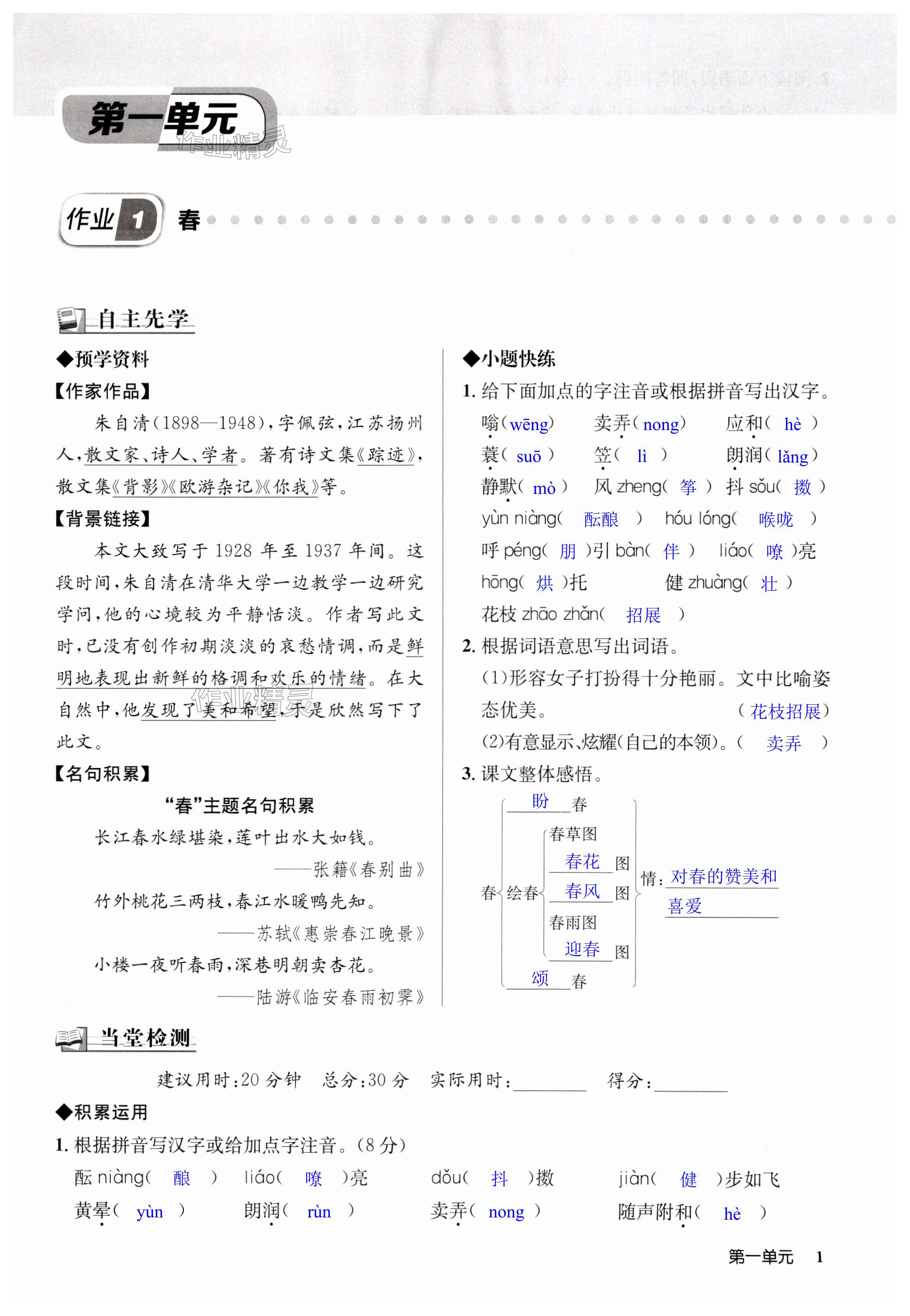 2024年启东中学作业本七年级语文上册人教版徐州专版