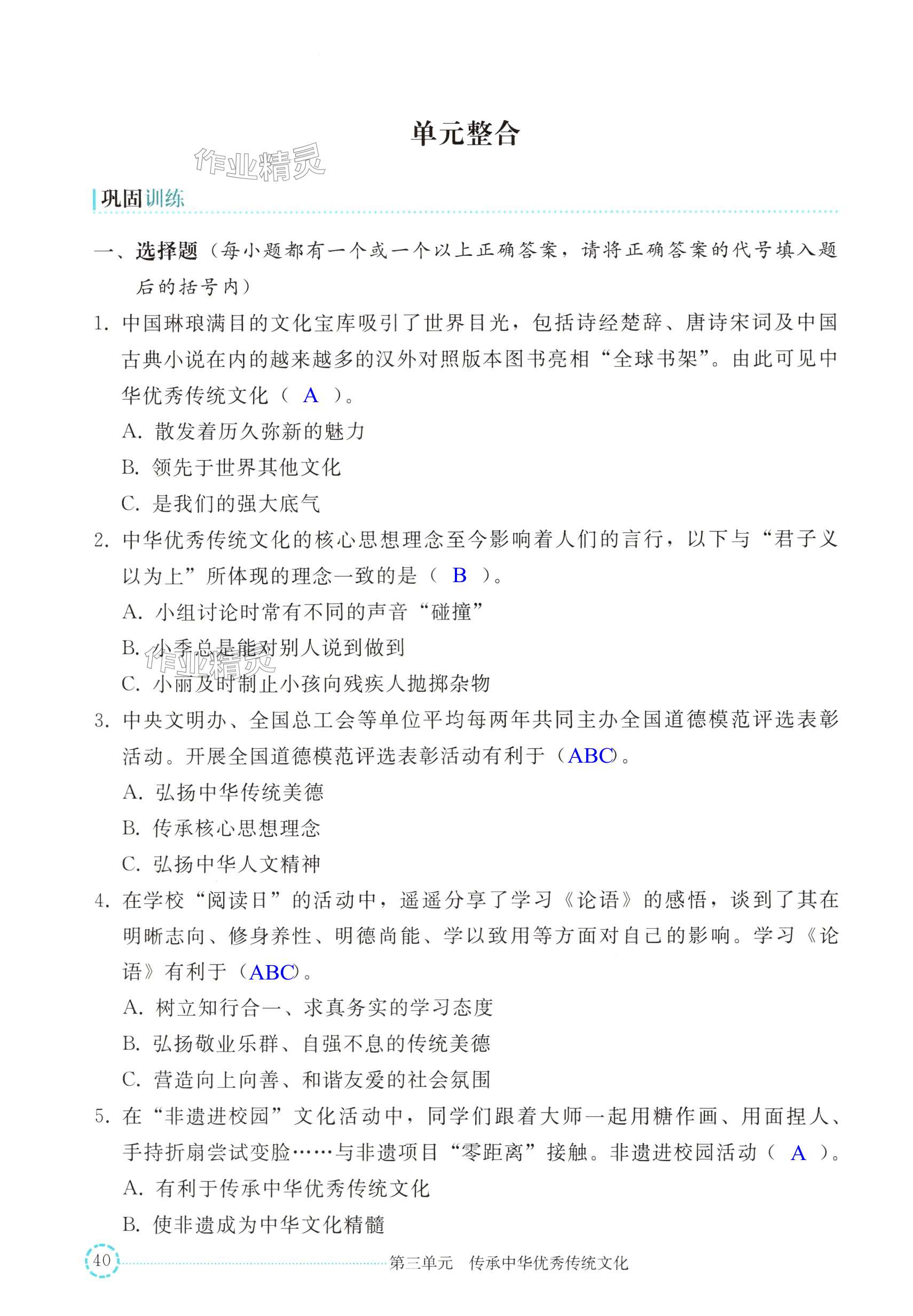注:目前有些书本章节名称可能整理的还不是很完善,但都是按照顺序排列的,请同学们按照顺序仔细查找。练习册 2024年练习部分七年级道德与法治全一册人教版五四制 答案主要是用来给同学们做完题方便对答案用的,请勿直接抄袭。