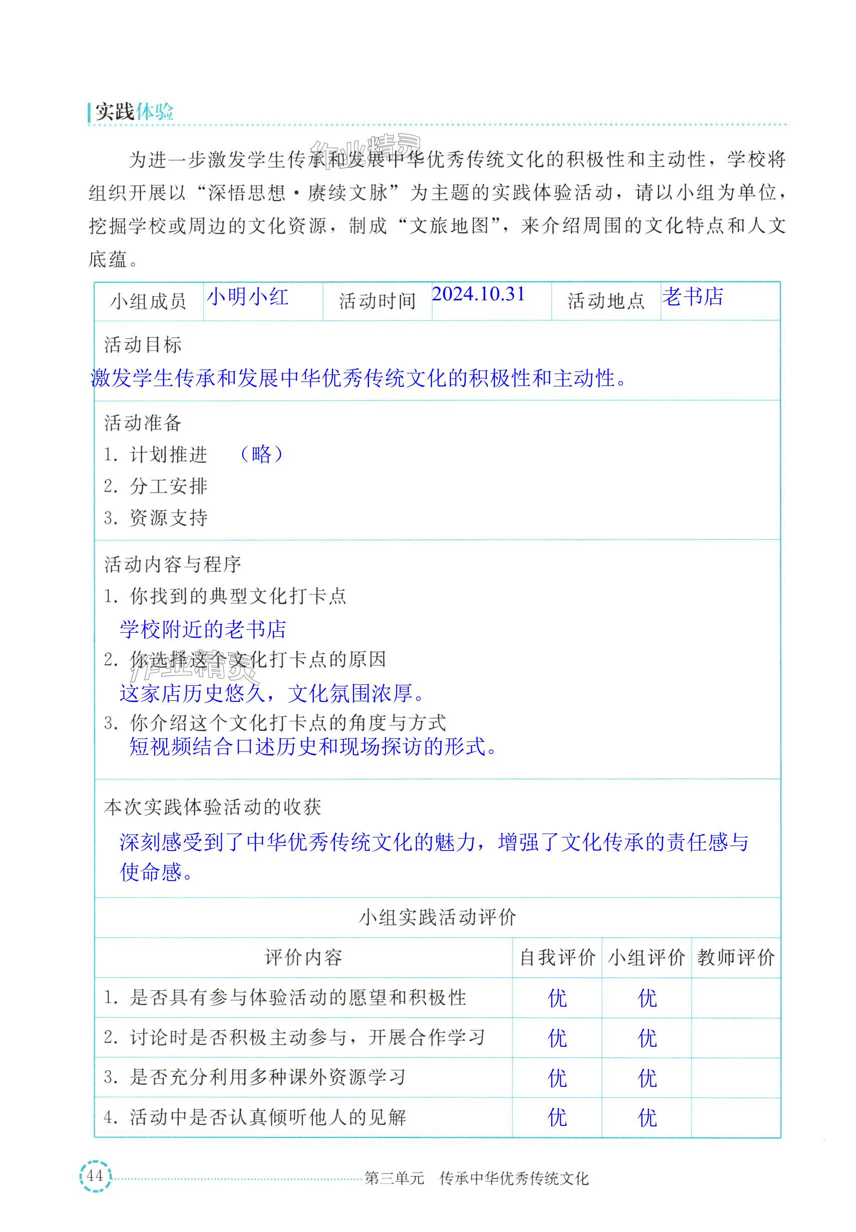 注:目前有些书本章节名称可能整理的还不是很完善,但都是按照顺序排列的,请同学们按照顺序仔细查找。练习册 2024年练习部分七年级道德与法治全一册人教版五四制 答案主要是用来给同学们做完题方便对答案用的,请勿直接抄袭。