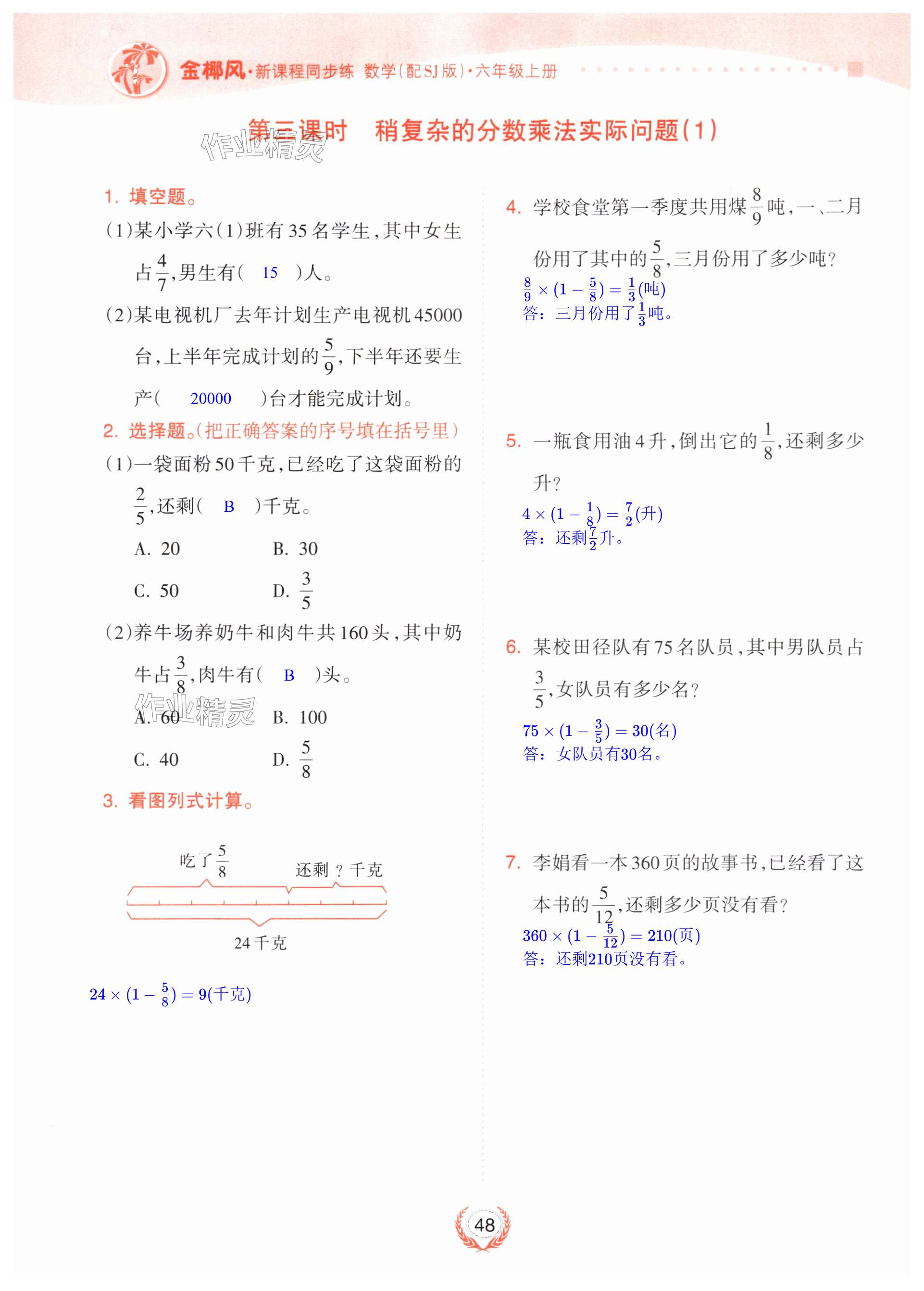 注:目前有些书本章节名称可能整理的还不是很完善,但都是按照顺序排列的,请同学们按照顺序仔细查找。练习册 2024年金椰风新课程同步练六年级数学上册苏教版 答案主要是用来给同学们做完题方便对答案用的,请勿直接抄袭。