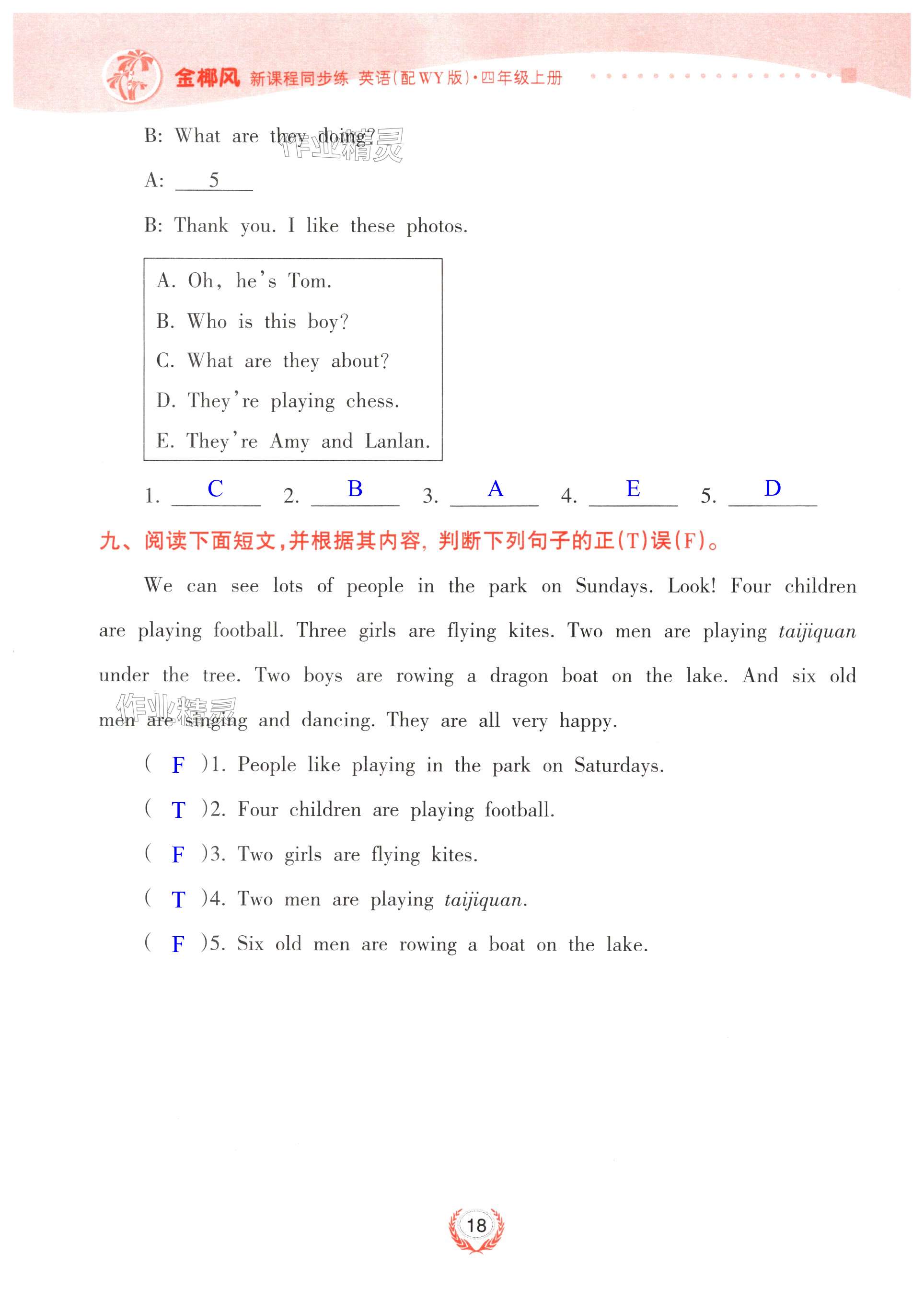 注:目前有些书本章节名称可能整理的还不是很完善,但都是按照顺序排列的,请同学们按照顺序仔细查找。练习册 2024年金椰风新课程同步练四年级英语上册外研版 答案主要是用来给同学们做完题方便对答案用的,请勿直接抄袭。