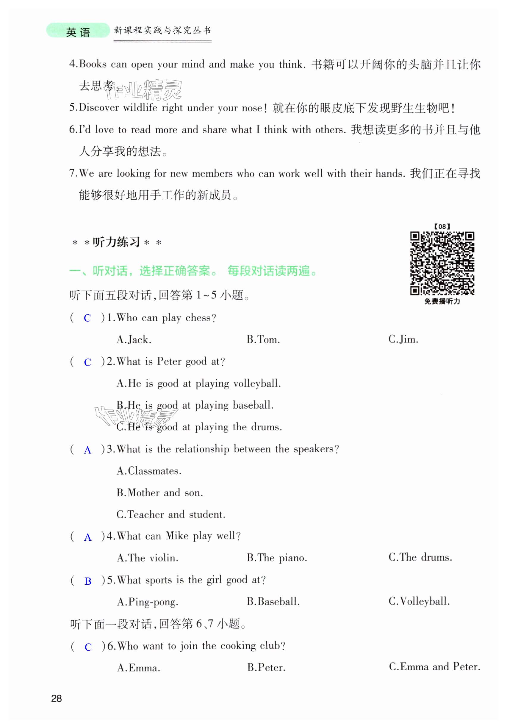 注:目前有些书本章节名称可能整理的还不是很完善,但都是按照顺序排列的,请同学们按照顺序仔细查找。练习册 2024年新课程实践与探究丛书七年级英语上册人教版 答案主要是用来给同学们做完题方便对答案用的,请勿直接抄袭。
