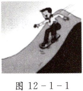 11. 如图12-1-1,小明从斜坡上踩滑板车下滑的过程中,下列说法中正确的是( )