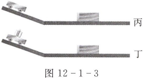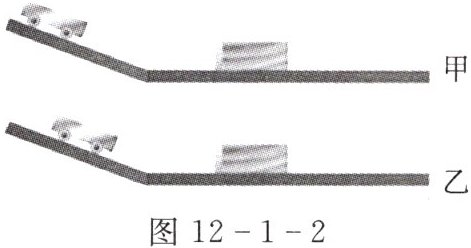 12. (1)如图12-1-2,让小车分别从不同高度由静止开始滑下。