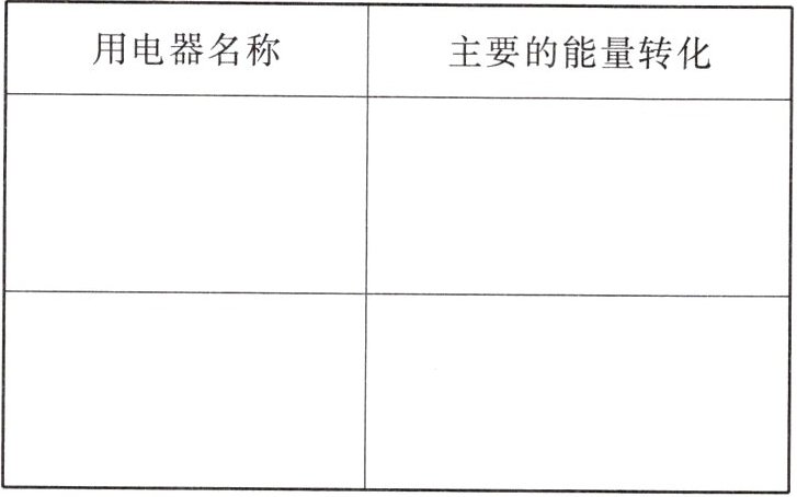 1. 日常生活中常见的用电设备有很多,如电饭锅、白炽灯、收音机、电风扇等。请你从中选出能量转化形式不同的两种用电器,并填入下表。