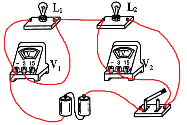 [猜想与假设]串联电路总电压等于各用电器两端的电压之和。