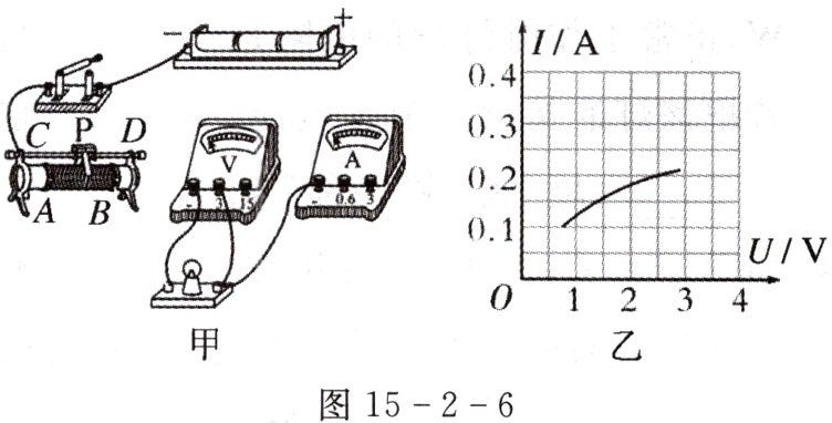 10. 在如图 15-2-5 所示“测量小灯泡电功率”的实验中,小灯泡的额定电压为 2.5 V,滑动变阻器上标有“10 Ω 1 A”的字样。