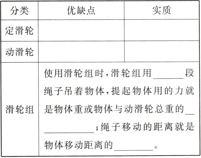 15. 根据你所掌握的滑轮知识,完成下列表格:
