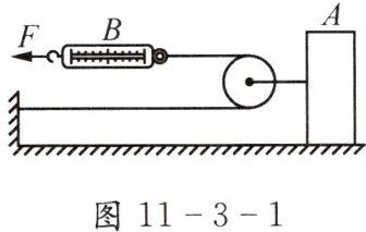 11. 如图 11-3-1 所示,物体 A 通过动滑轮在水平拉力 F 的作用下沿水平面以 2米/秒的速度匀速运动,此时弹簧秤 B 的读数为 8 牛,如果动滑轮、绳子、弹簧秤的重力和摩擦均不考虑,那么物体 A 与水平面的摩擦力以及 2 秒内 F 所做的功分别为 ( )