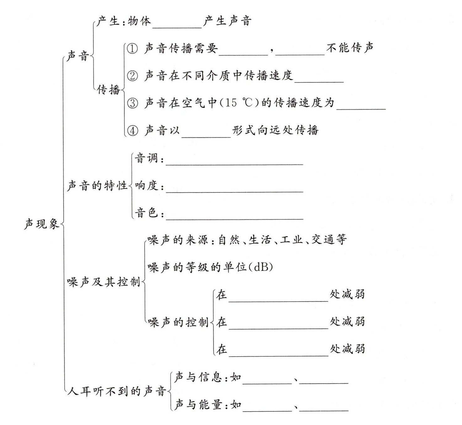 ③ 声音在空气中($15\ ^{\circ}C$)的传播速度为______