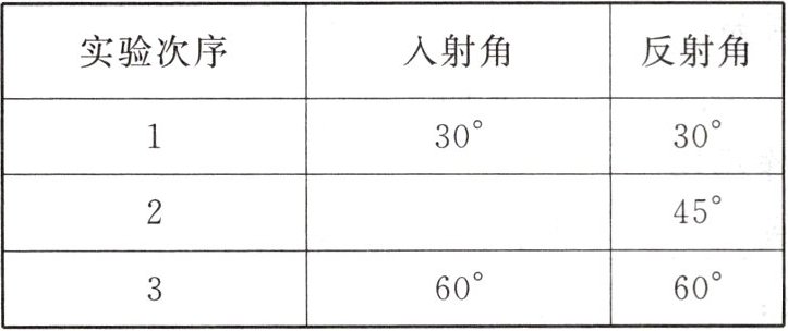 |实验次序|入射角|反射角|