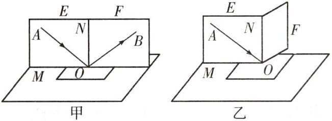 (1)如图乙所示,把半面纸板F向前或向后折,______(填“能”或“不能”)看到反射光线,说明反射光线与入射光线及法线ON在______。