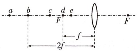 5. 张晨在做研究凸透镜成像的实验时,保持凸透镜位置不变,如图所示,先后使烛焰位于a、b、c、d 四点,并分别调整光屏的位置。实验后,他归纳出以下说法,其中错误的是( )