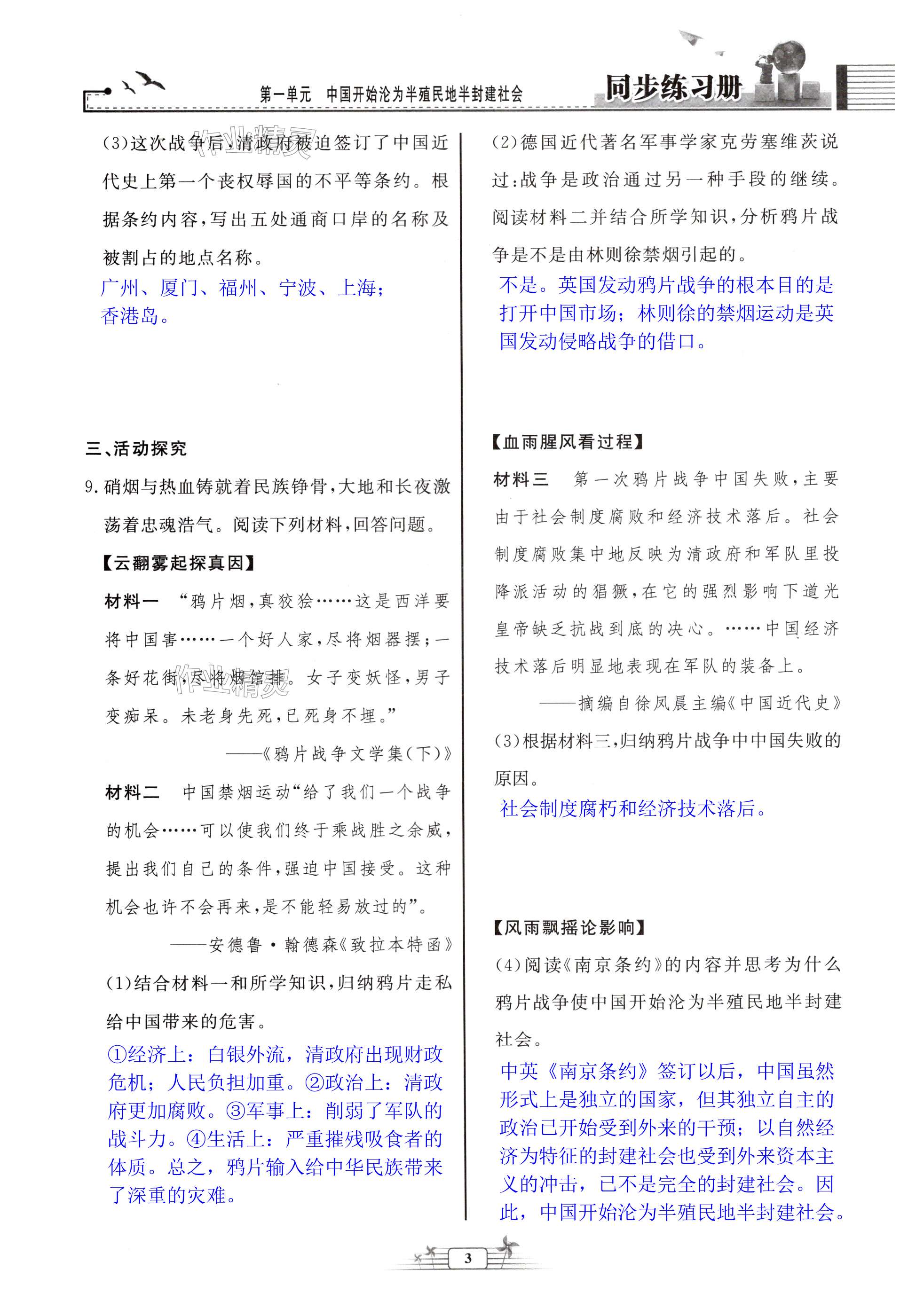 2024年同步练习册八年级中国历史上册人教版人民教育出版社江苏专用