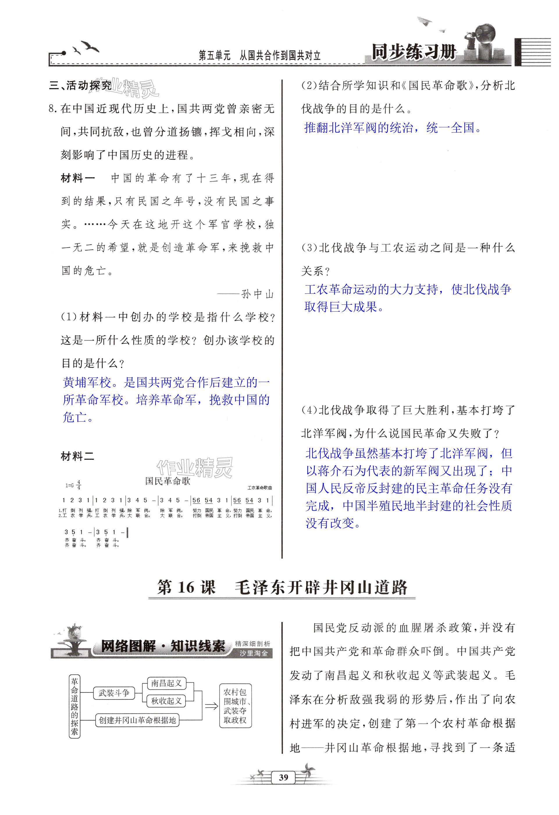注:目前有些书本章节名称可能整理的还不是很完善,但都是按照顺序排列的,请同学们按照顺序仔细查找。练习册 2024年同步练习册八年级中国历史上册人教版人民教育出版社江苏专用 答案主要是用来给同学们做完题方便对答案用的,请勿直接抄袭。