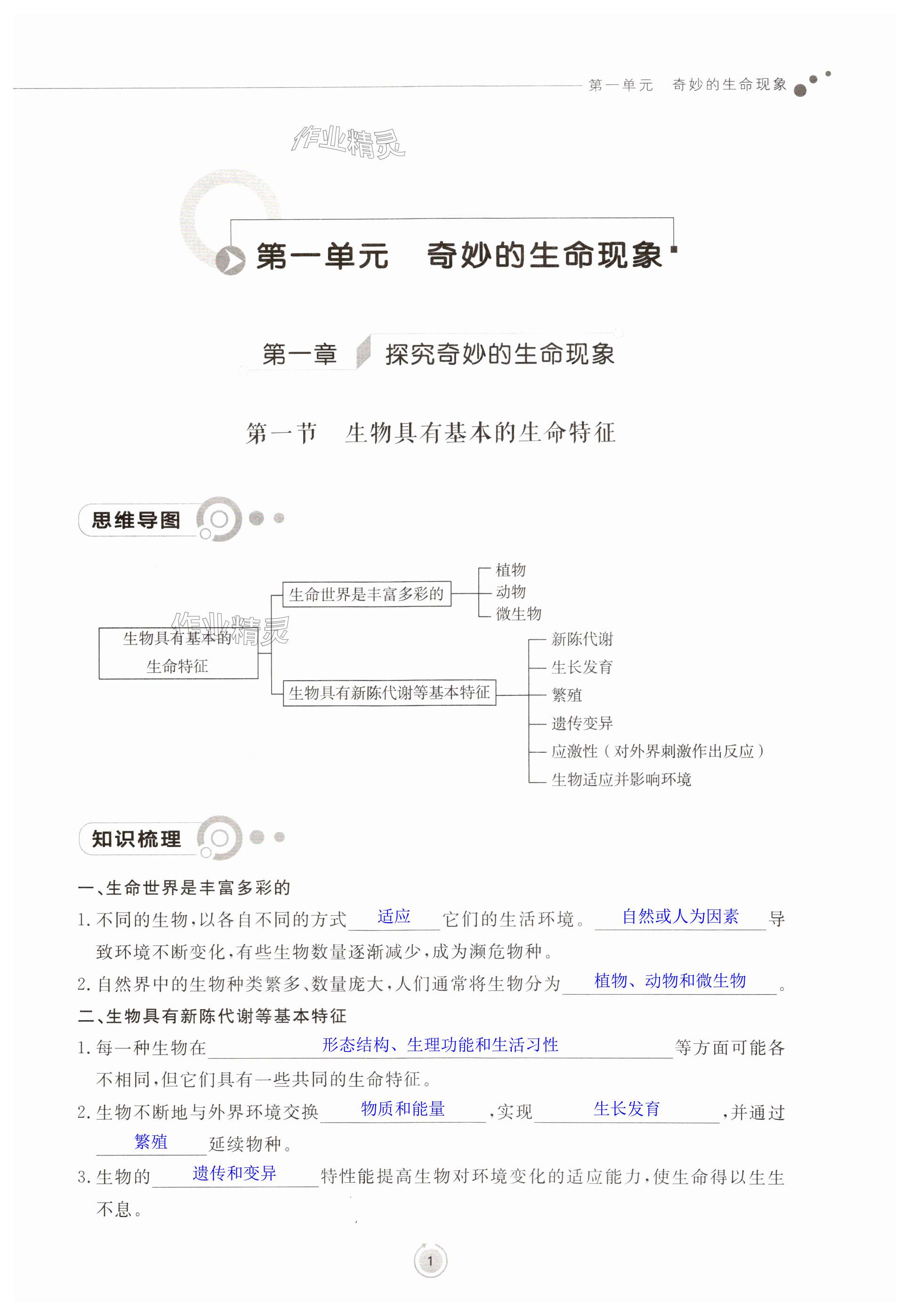 注:目前有些书本章节名称可能整理的还不是很完善,但都是按照顺序排列的,请同学们按照顺序仔细查找。练习册 2024年同步练习册鹭江出版社七年级生物上册济南版 答案主要是用来给同学们做完题方便对答案用的,请勿直接抄袭。