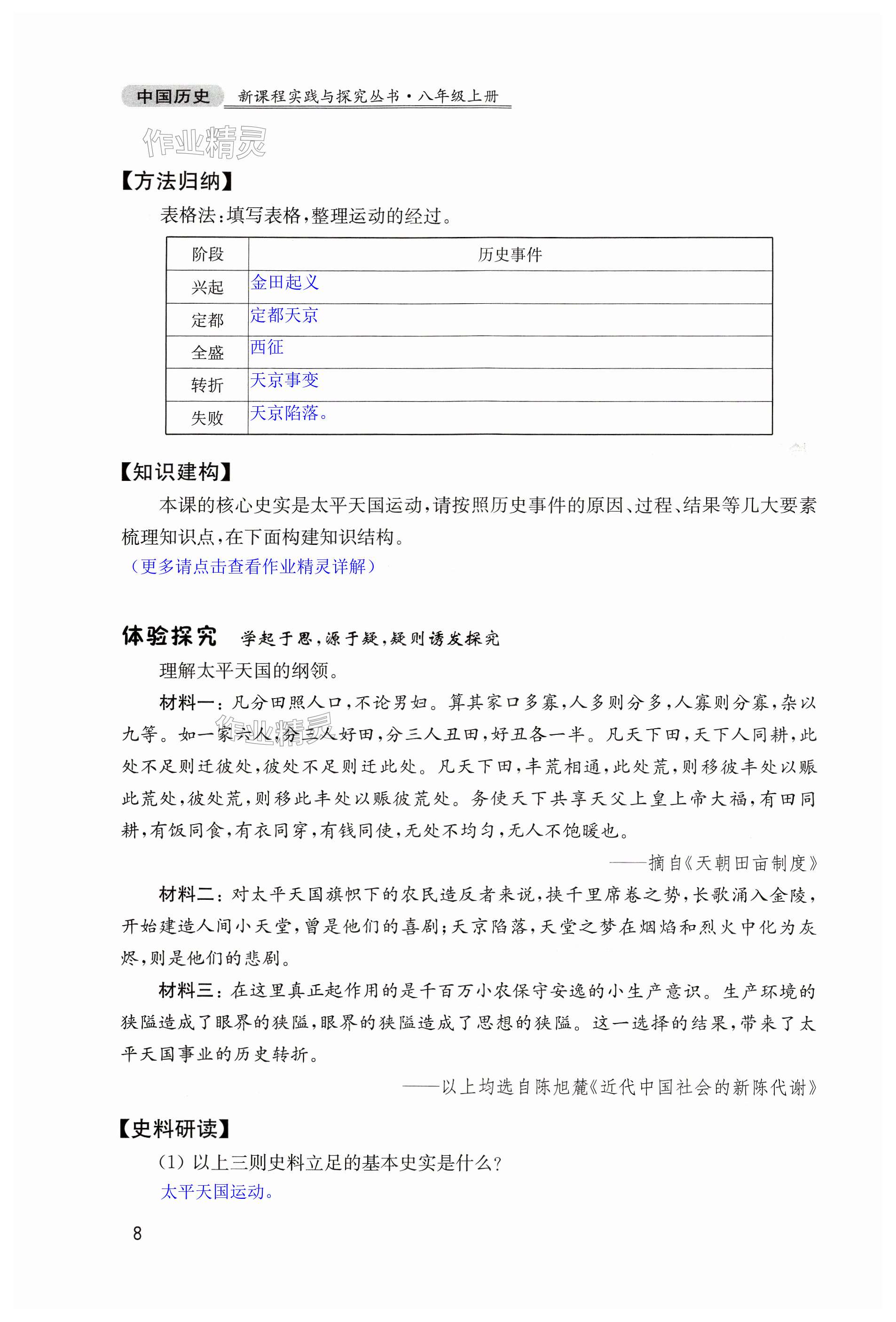 注:目前有些书本章节名称可能整理的还不是很完善,但都是按照顺序排列的,请同学们按照顺序仔细查找。练习册 2024年新课程实践与探究丛书八年级中国历史上册人教版江苏专版 答案主要是用来给同学们做完题方便对答案用的,请勿直接抄袭。