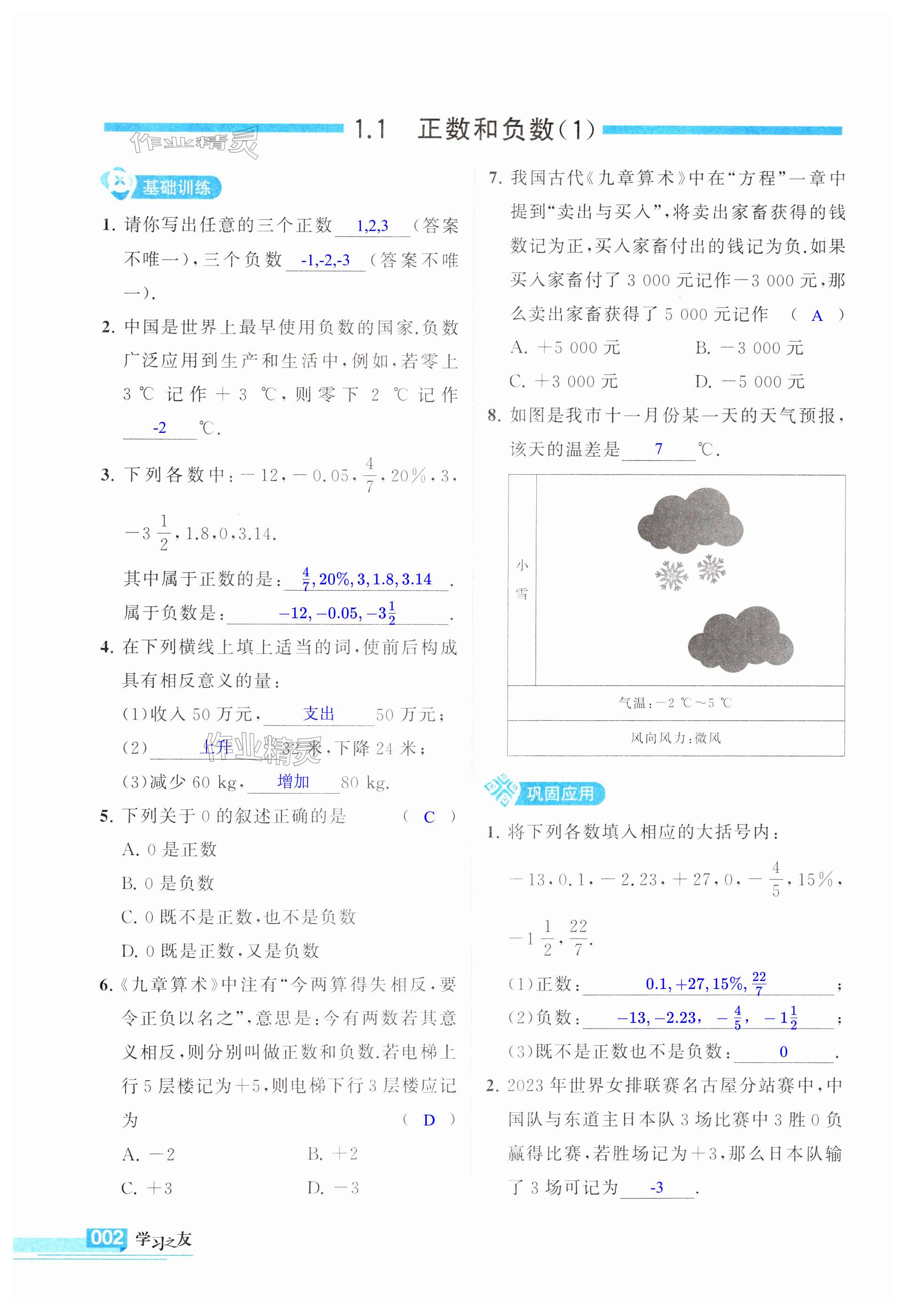 注:目前有些书本章节名称可能整理的还不是很完善,但都是按照顺序排列的,请同学们按照顺序仔细查找。练习册 2024年学习之友七年级数学上册人教版 答案主要是用来给同学们做完题方便对答案用的,请勿直接抄袭。