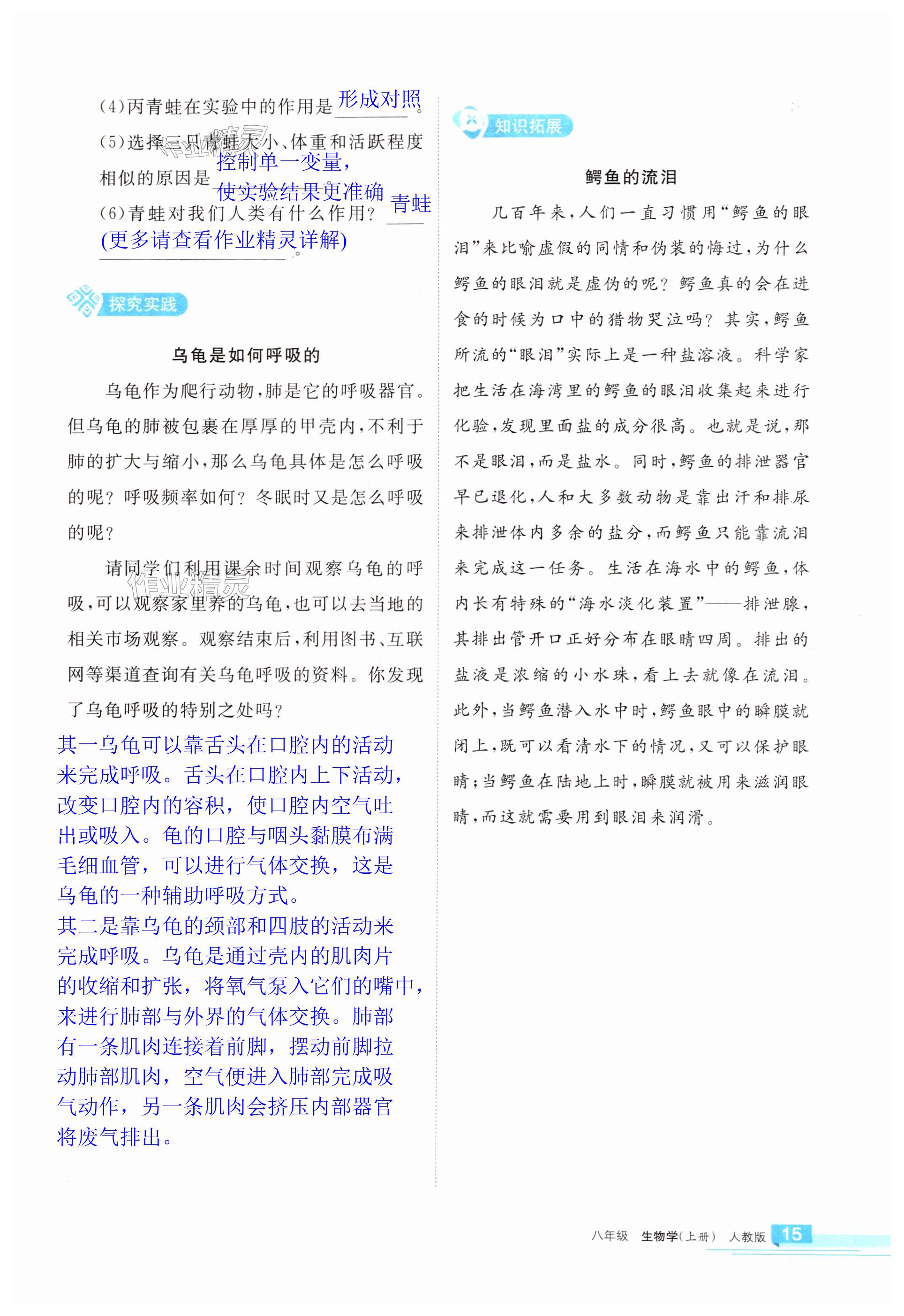 注:目前有些书本章节名称可能整理的还不是很完善,但都是按照顺序排列的,请同学们按照顺序仔细查找。练习册 2024年学习之友八年级生物上册人教版 答案主要是用来给同学们做完题方便对答案用的,请勿直接抄袭。
