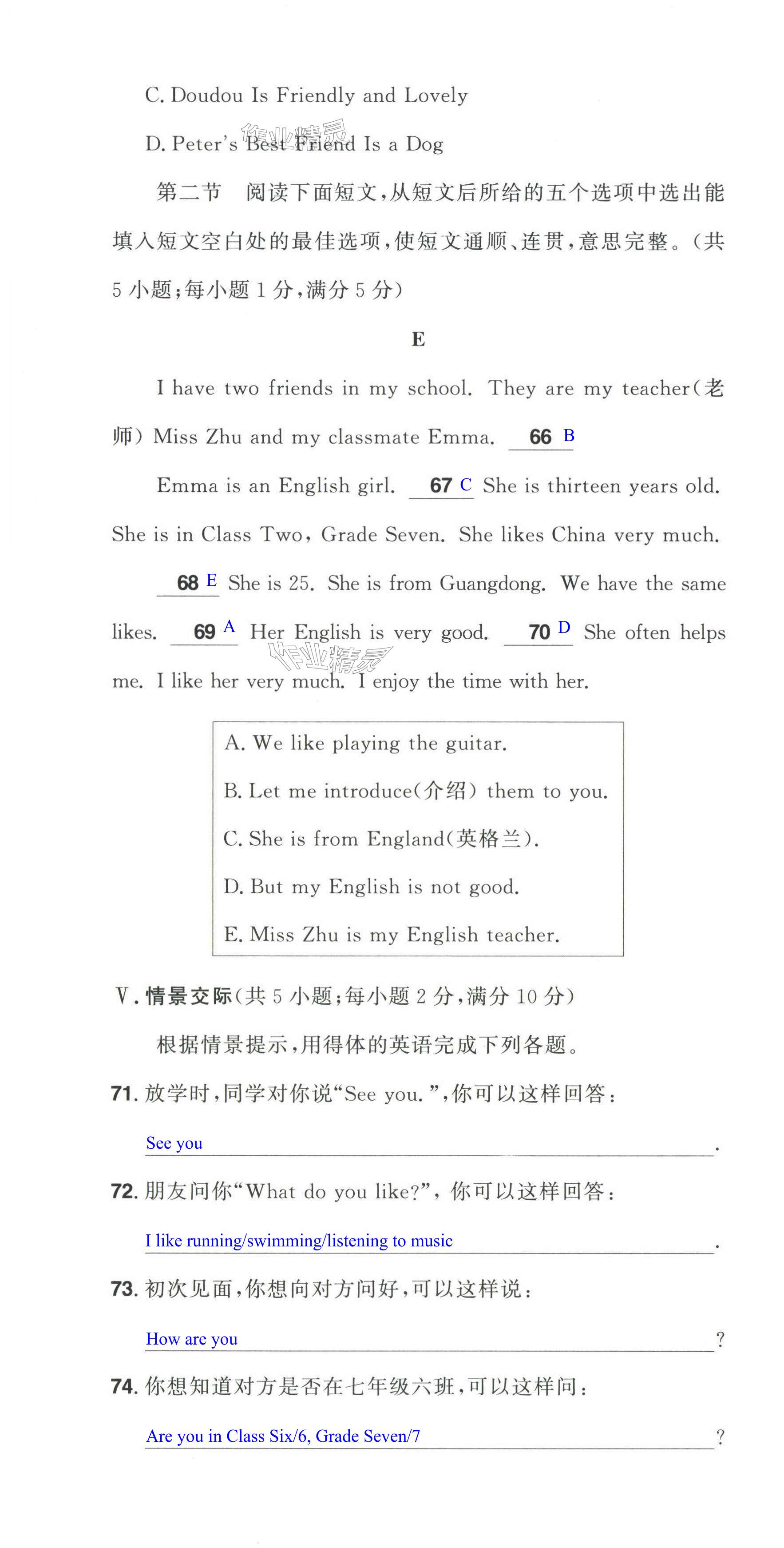 注:目前有些书本章节名称可能整理的还不是很完善,但都是按照顺序排列的,请同学们按照顺序仔细查找。练习册 2024年阳光同学分层设计七年级英语上册人教版福建专版 答案主要是用来给同学们做完题方便对答案用的,请勿直接抄袭。