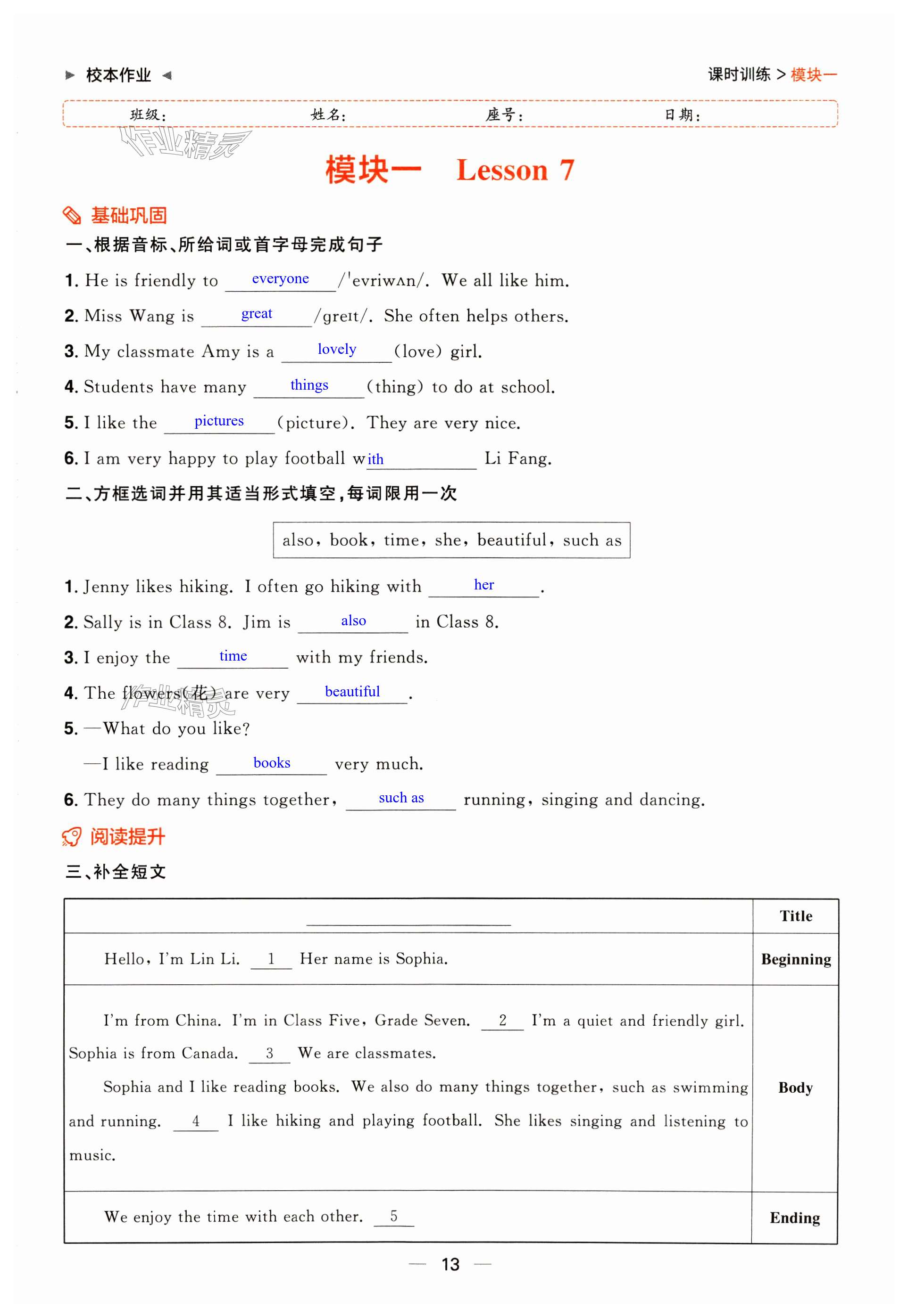 注:目前有些书本章节名称可能整理的还不是很完善,但都是按照顺序排列的,请同学们按照顺序仔细查找。练习册 2024年阳光同学分层设计七年级英语上册人教版福建专版 答案主要是用来给同学们做完题方便对答案用的,请勿直接抄袭。